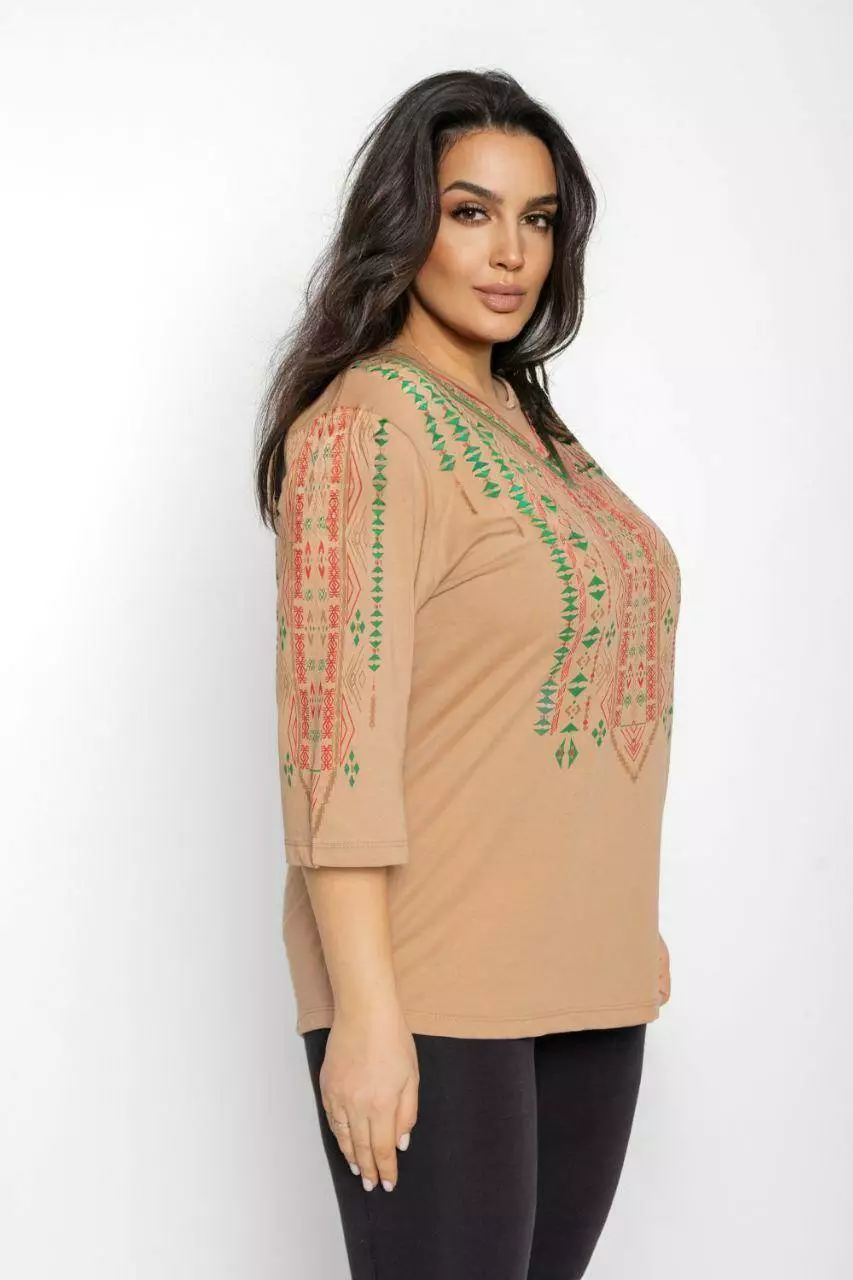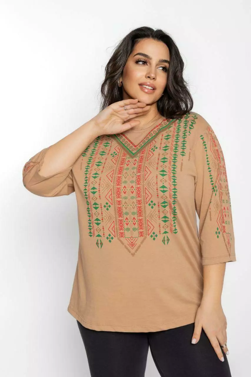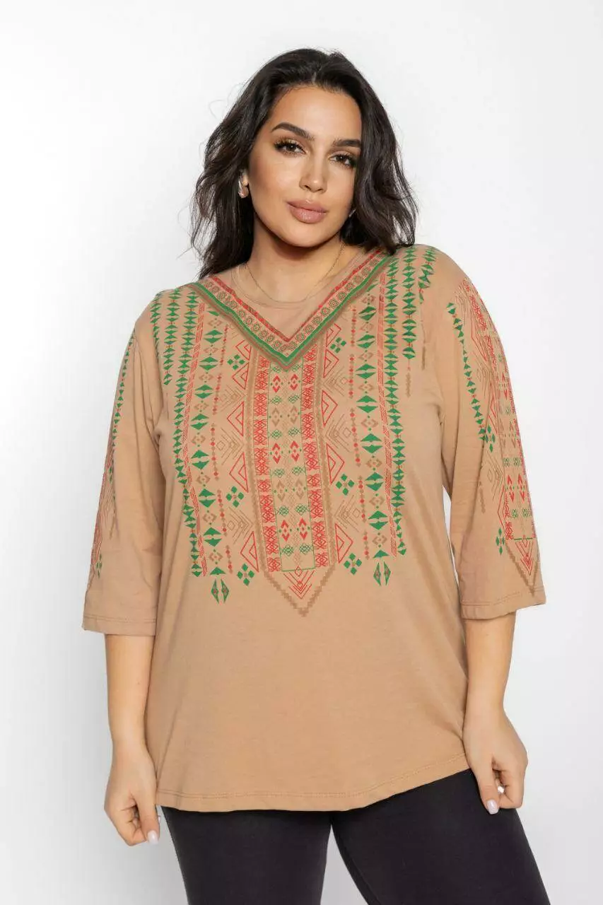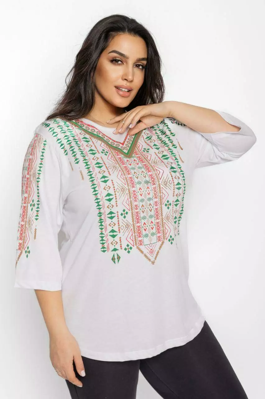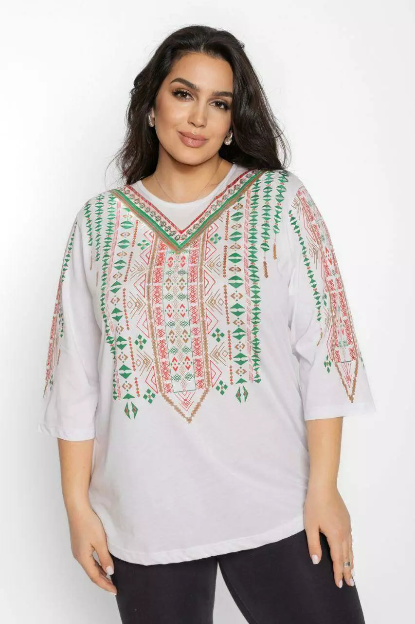 Блуза 3/4 вышиванка женская батал 48-56 рр тетрис