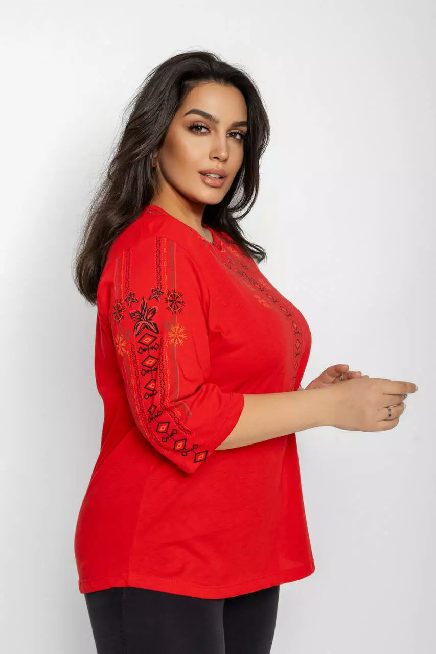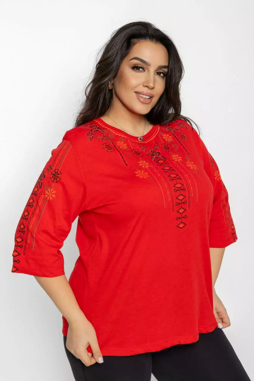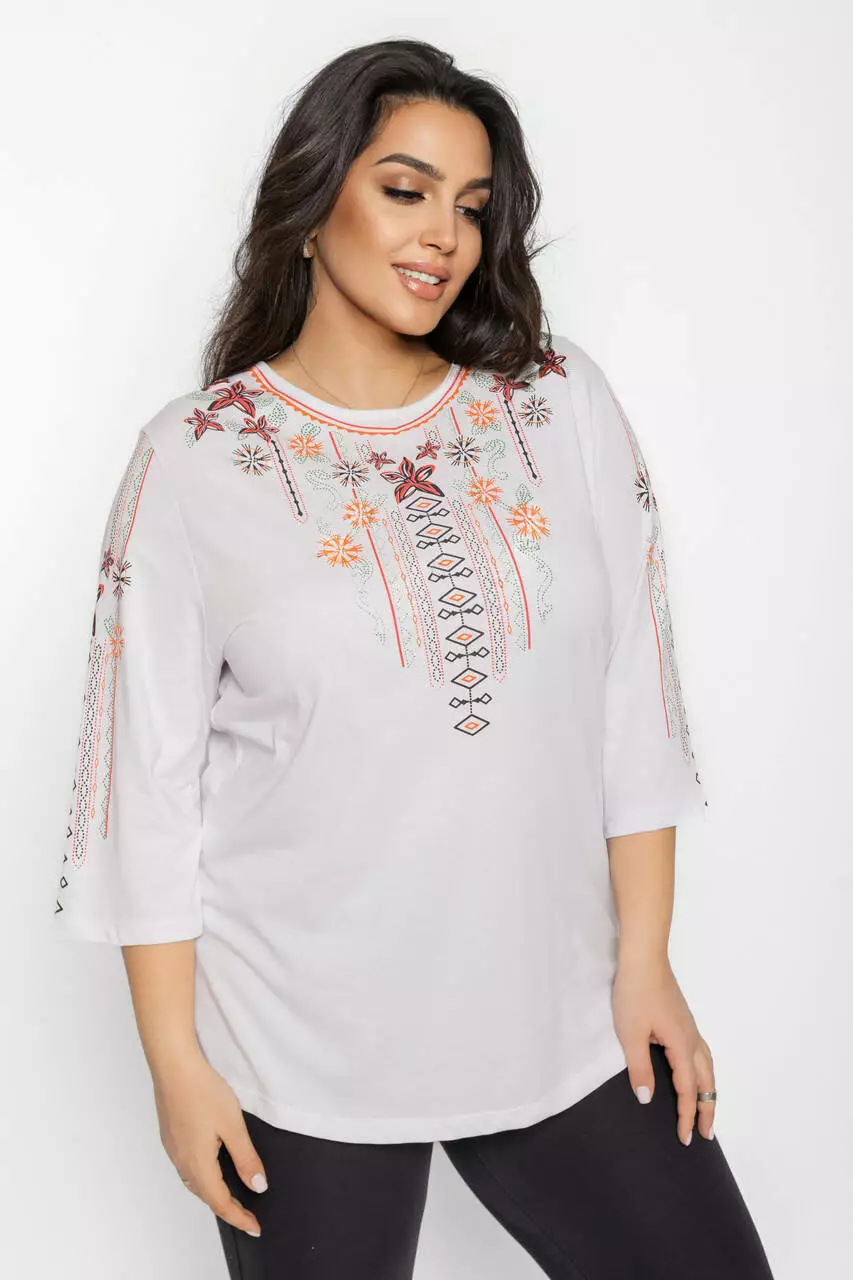Блуза 3/4 вышиванка женская батал 58-64 рр лилия Черный