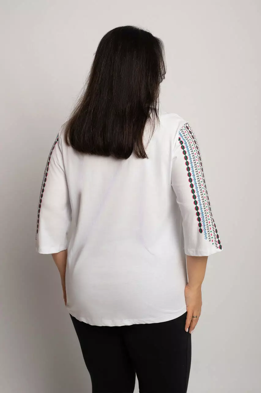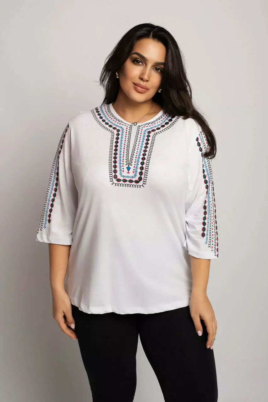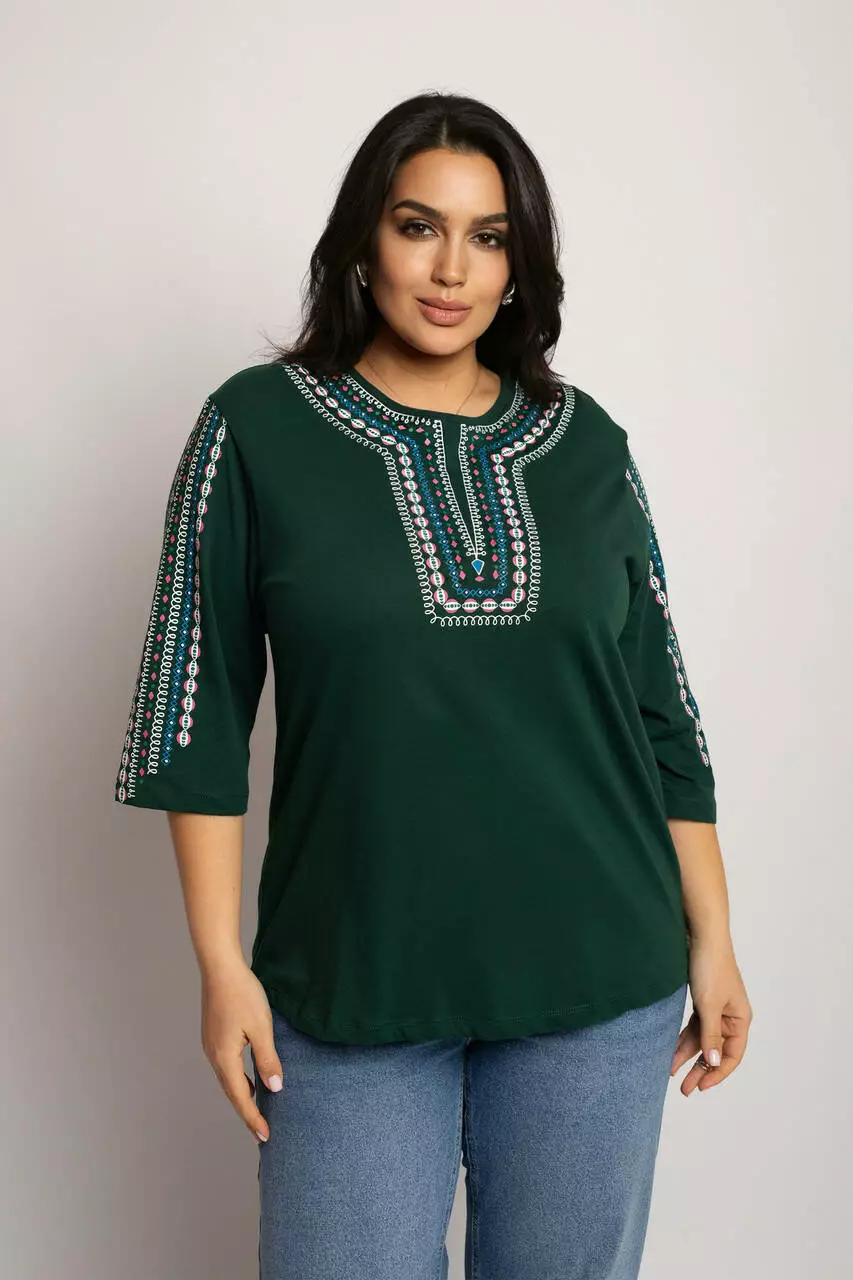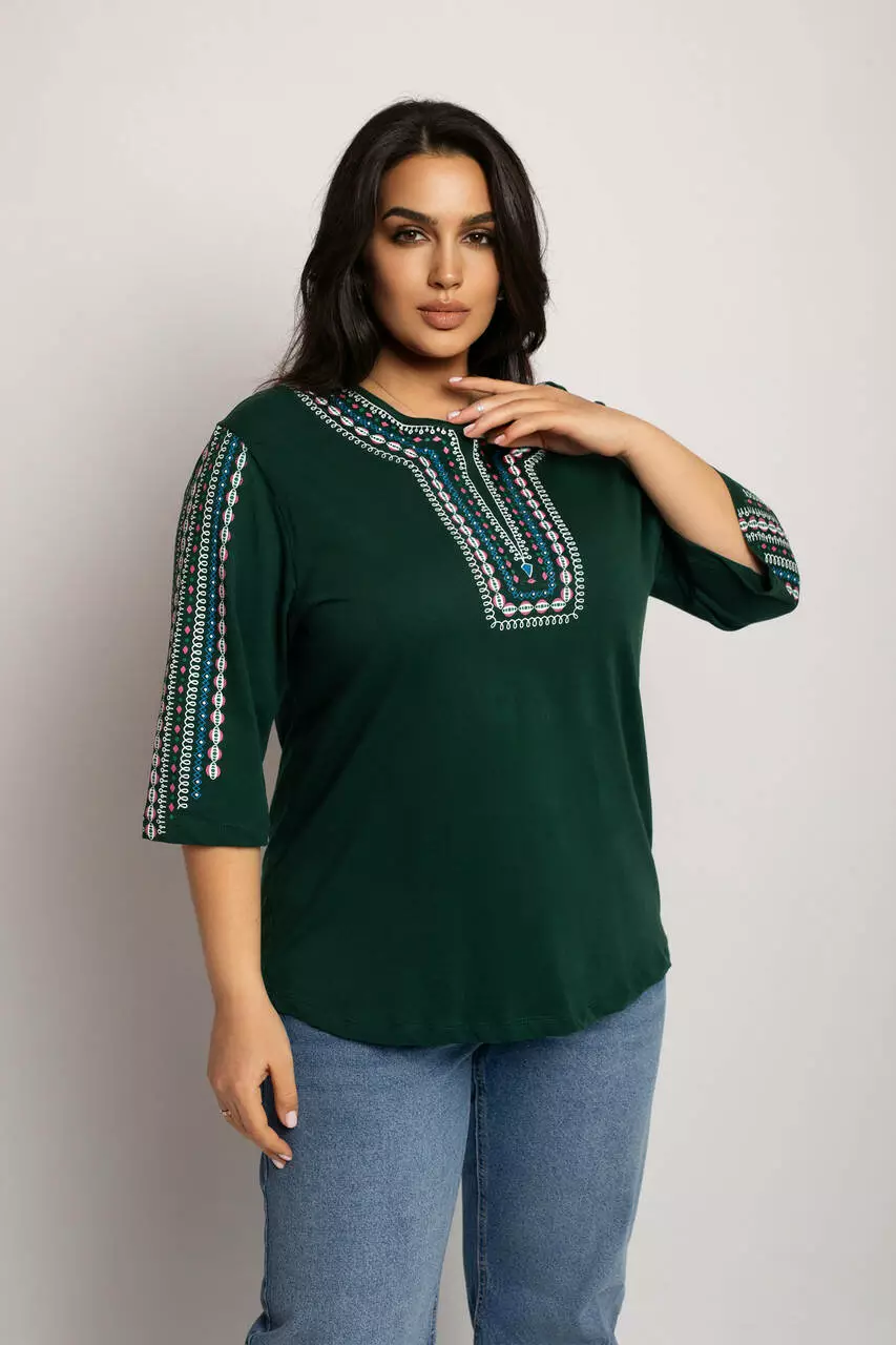 Блуза 3/4 вышиванка женская батал 56-64 рр пружинка Изумрудный