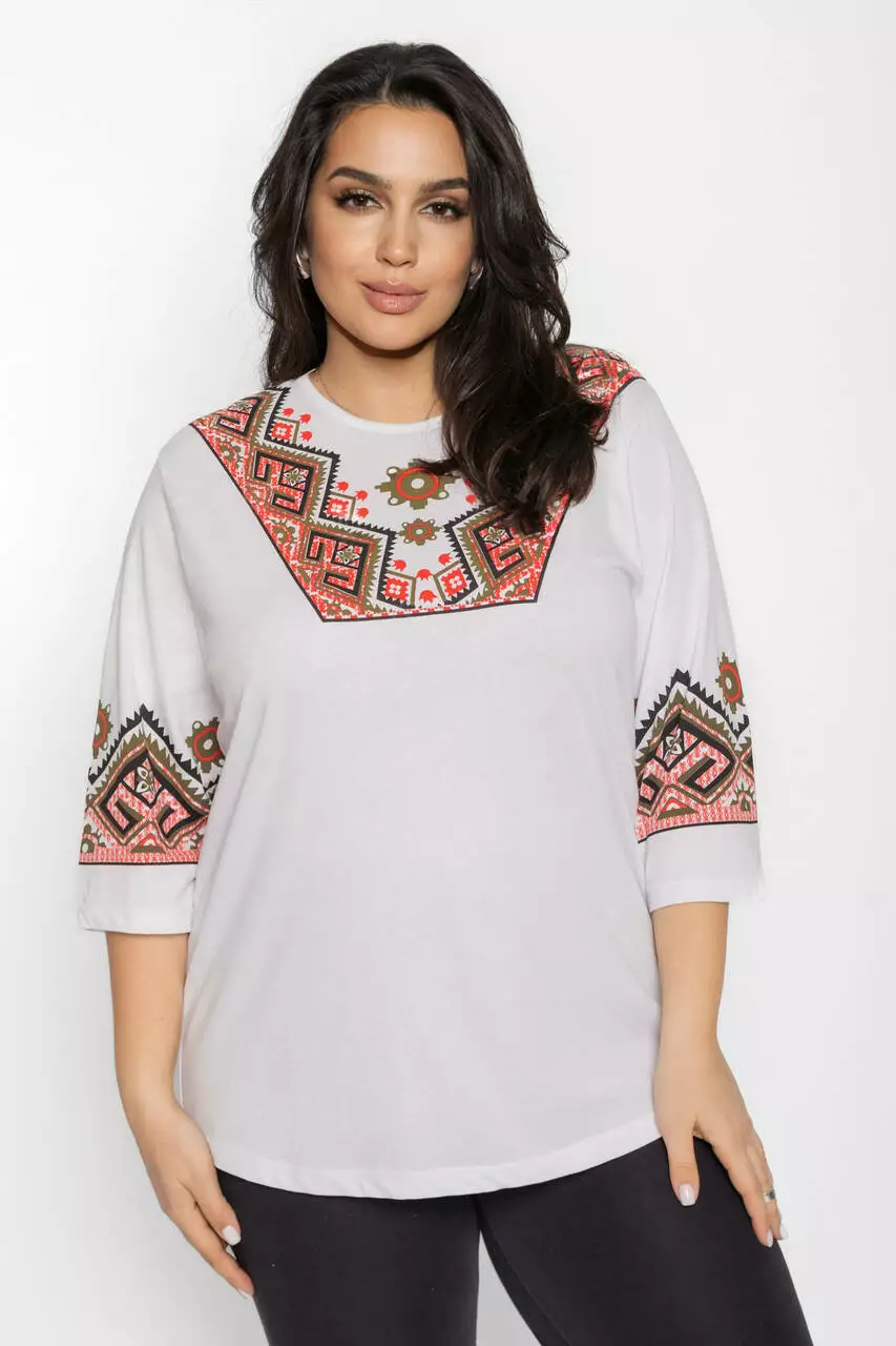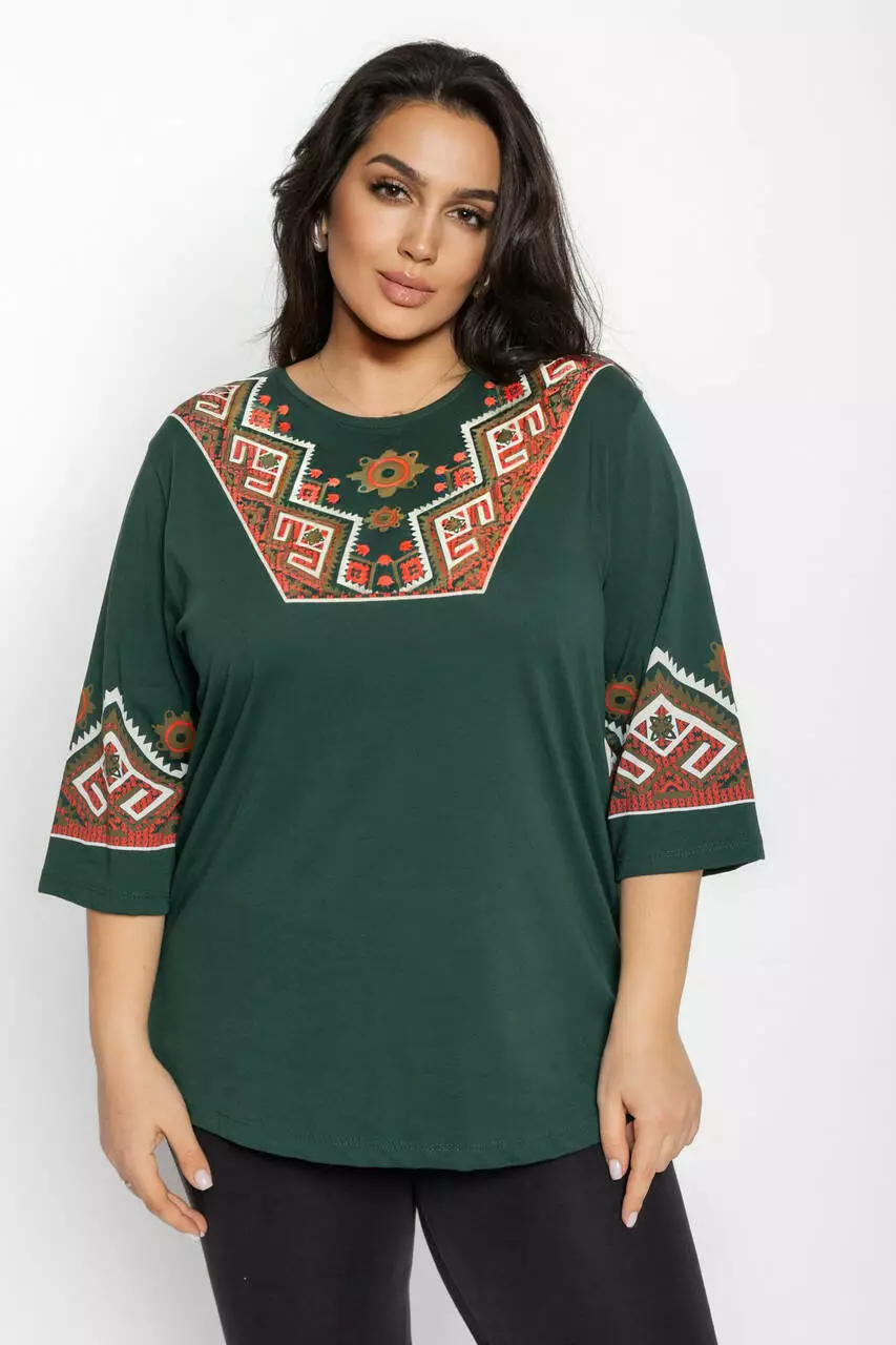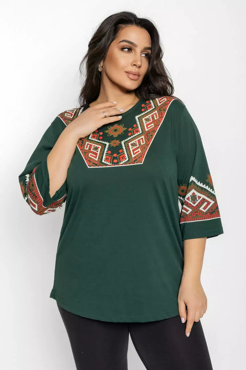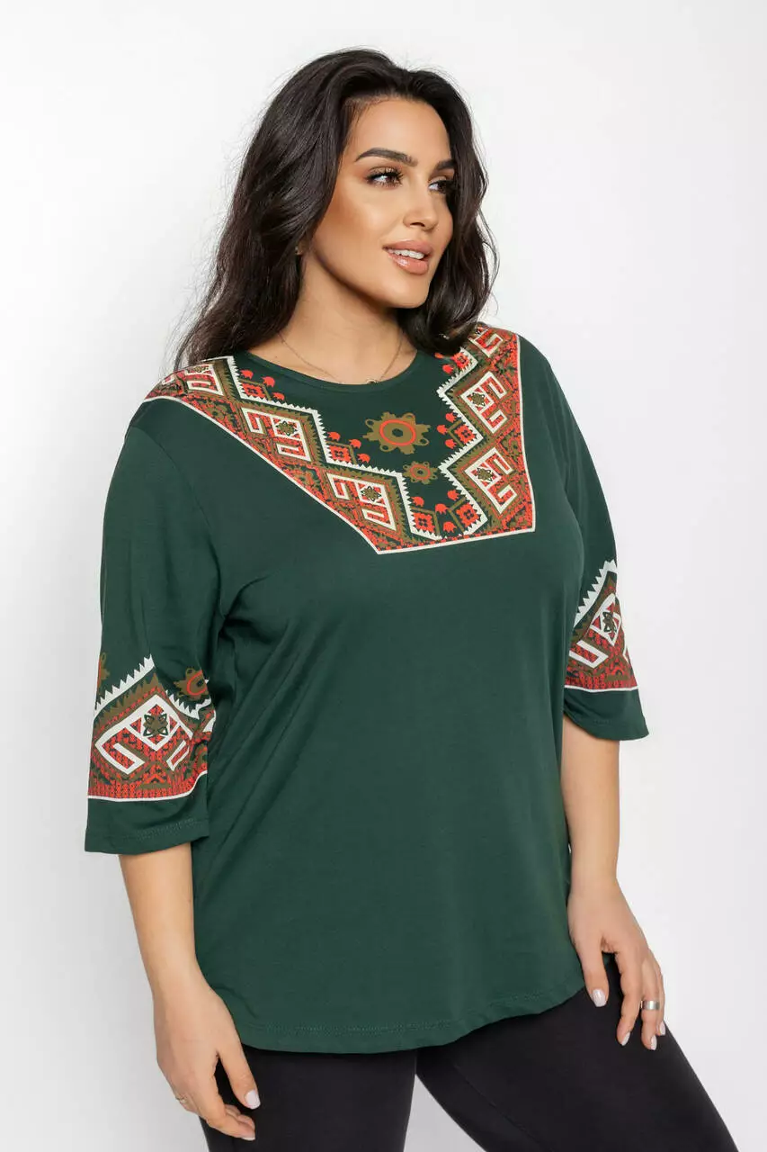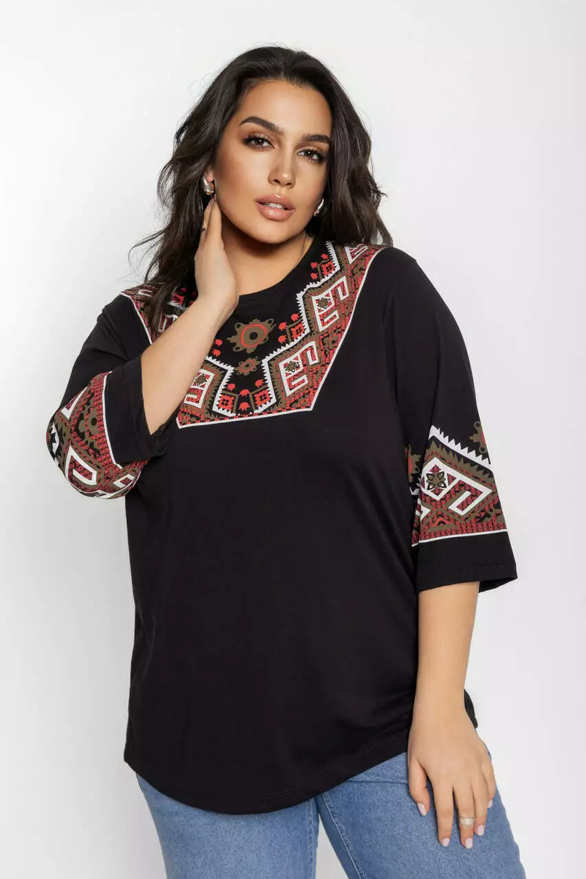 Блуза 3/4 вышиванка женская батал 58-64 рр рушник Черный