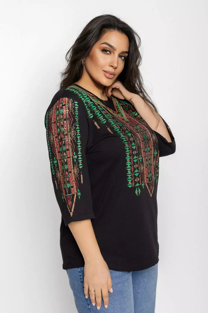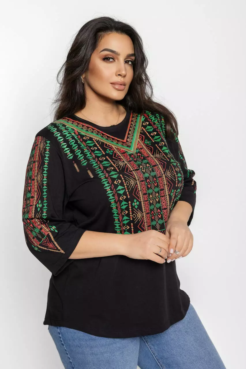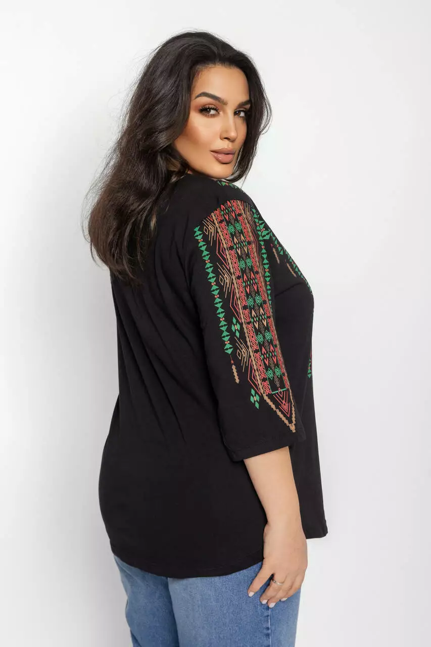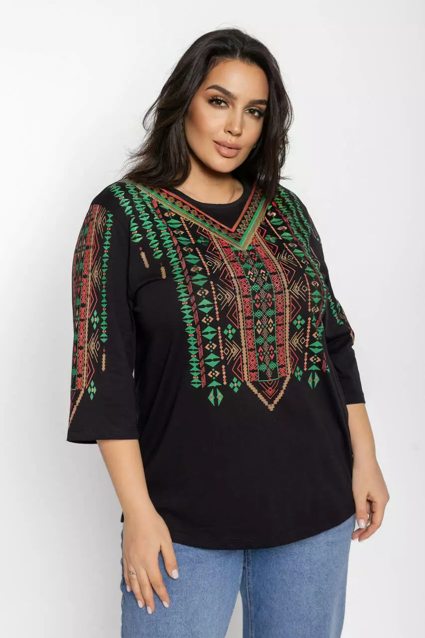 Блуза 3/4 вышиванка женская батал 58-64 рр тетрис Чёрный
