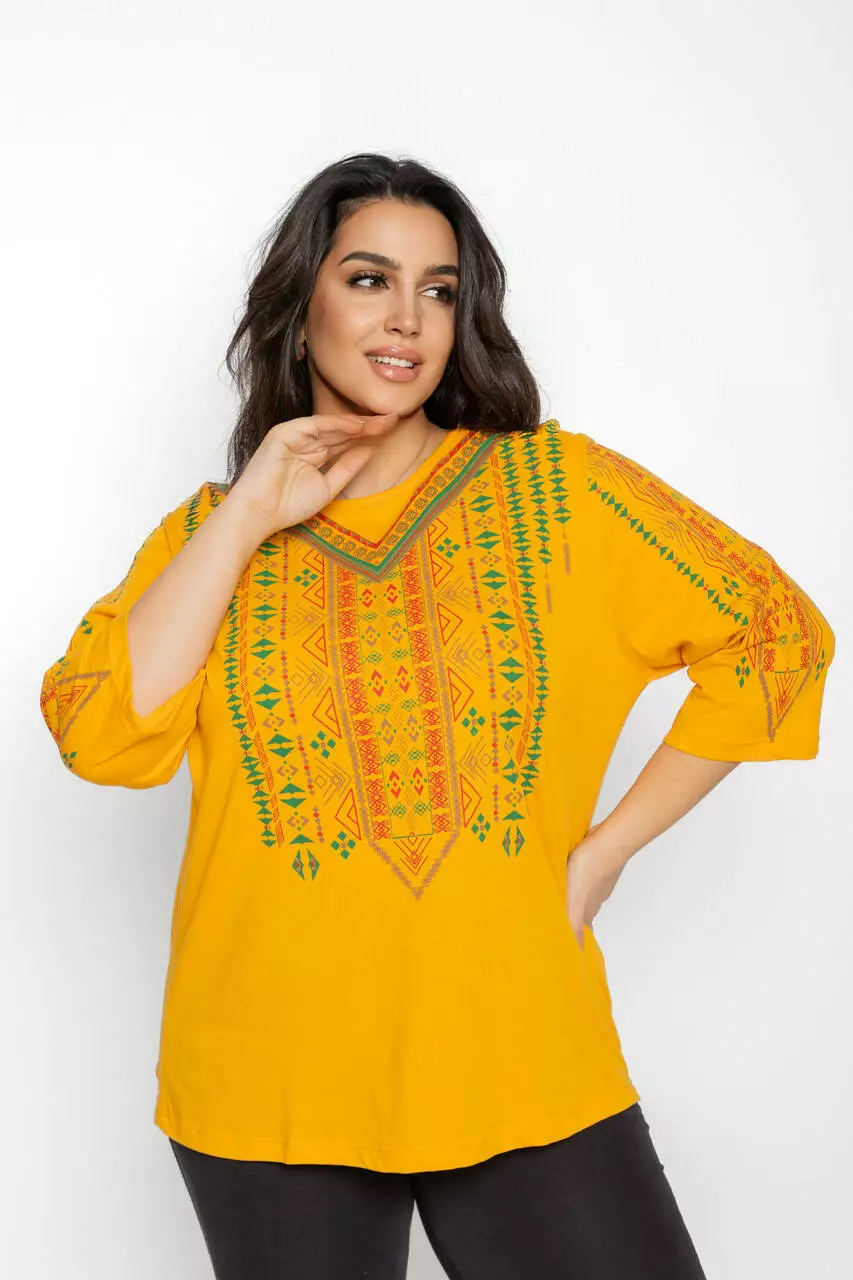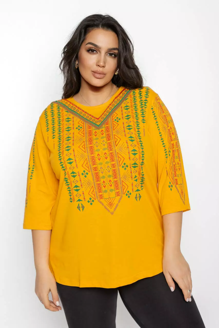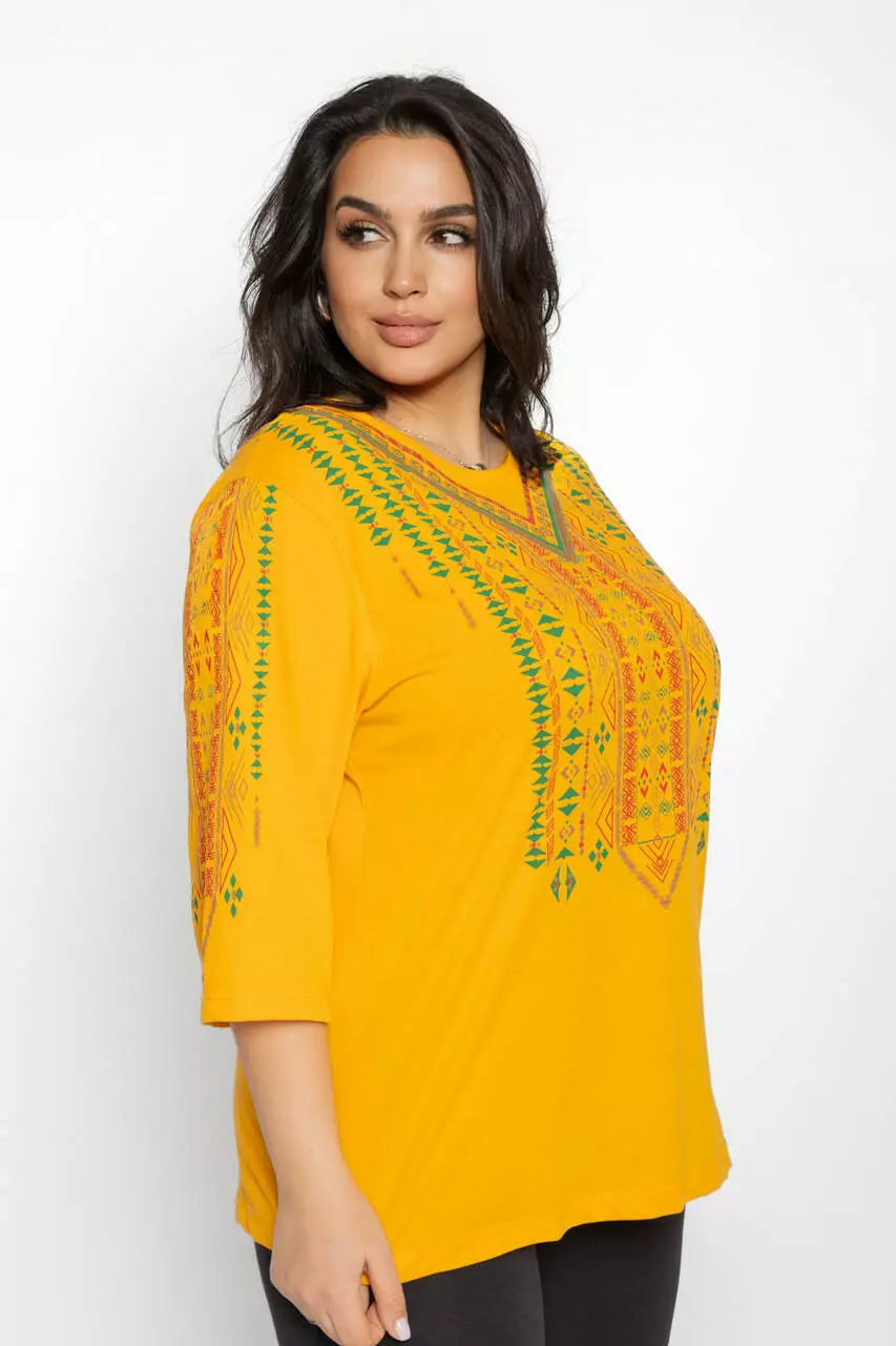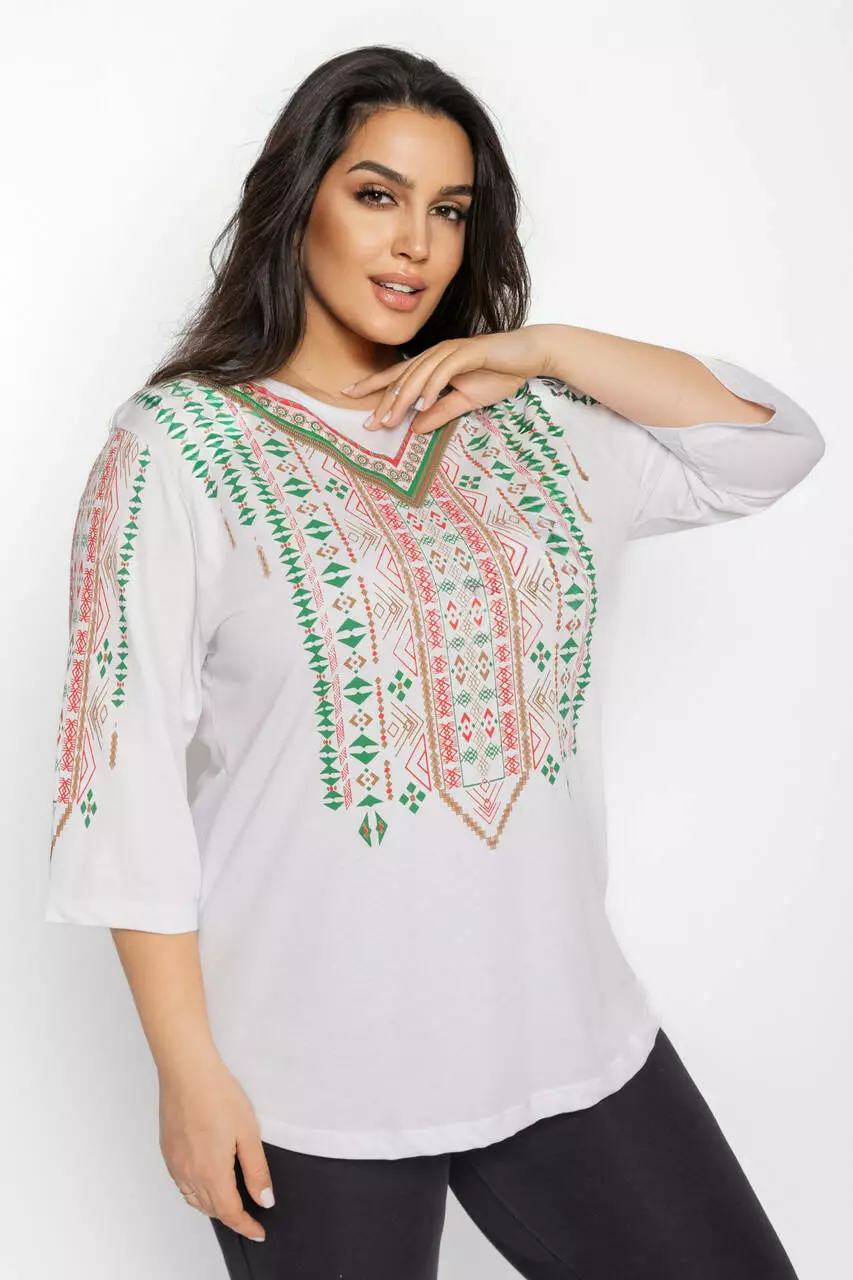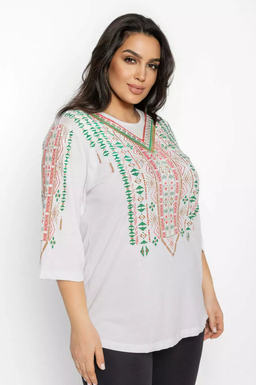Блуза 3/4 вышиванка женская батал 58-64 рр тетрис Чёрный