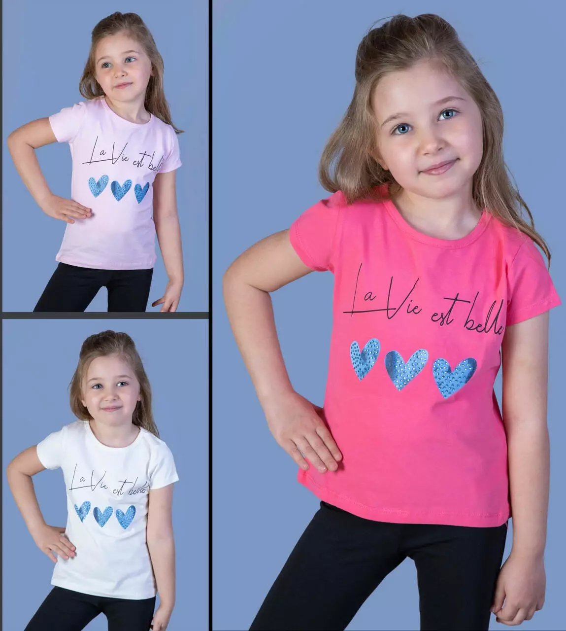 Детская футболка (девочка), 3-4-5-6 лет, синие сердца.