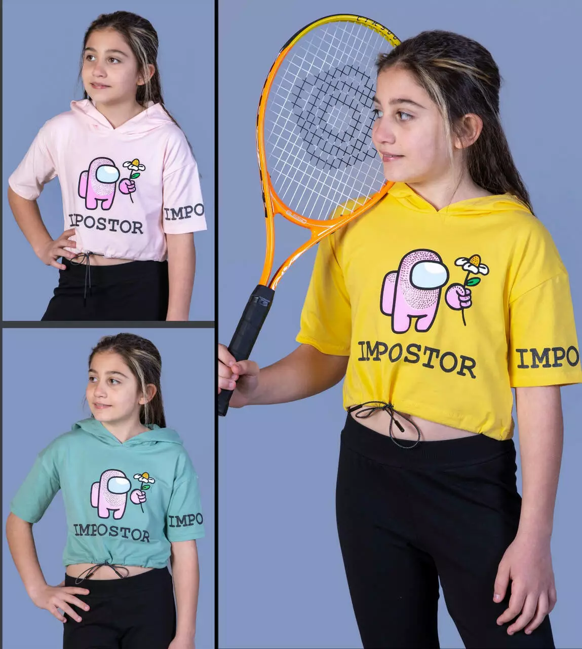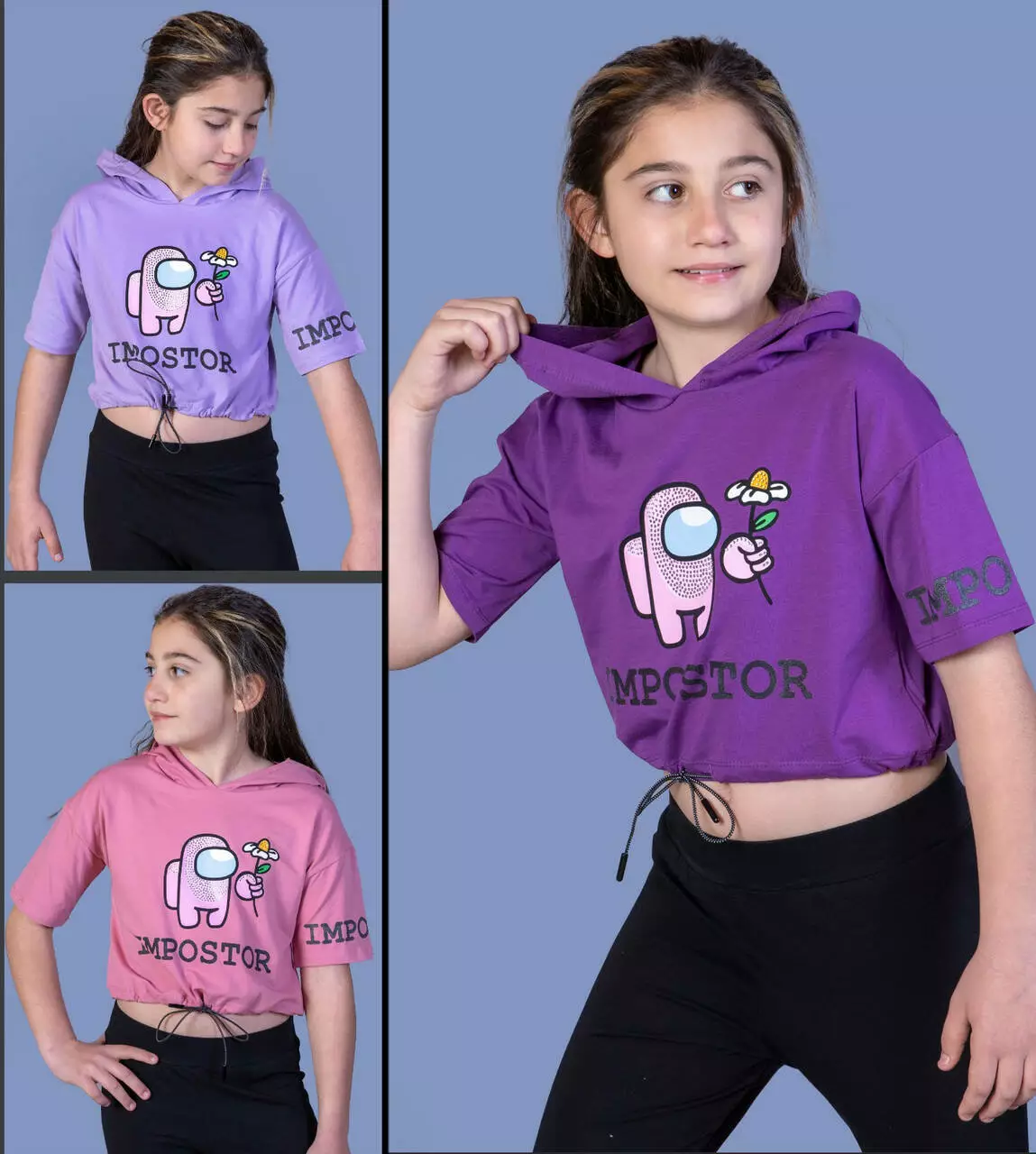 Детская укороченная футболка с капюшоном (девочка), 6-8-10-12 лет , Impostor