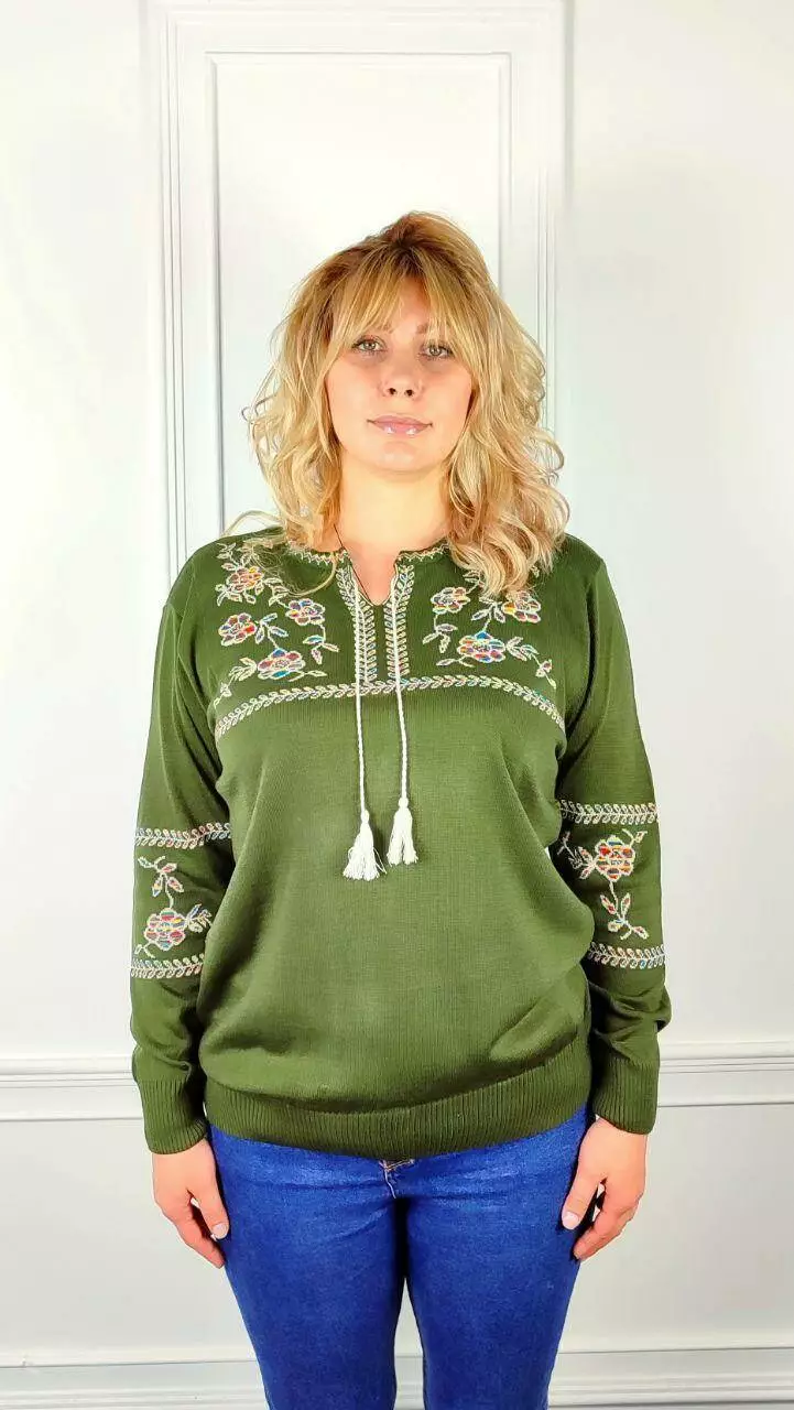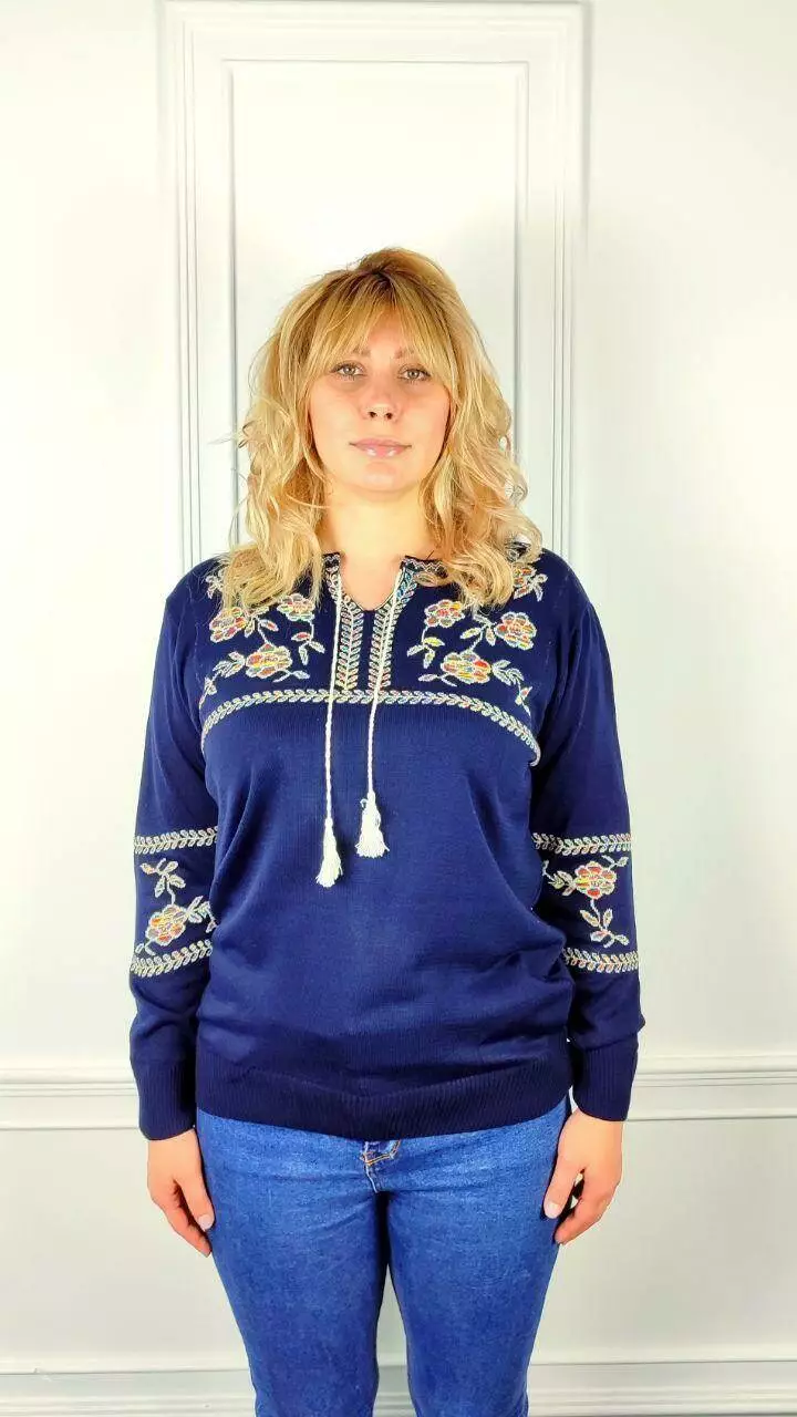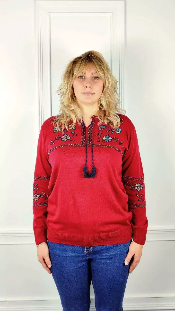 Джемпер вышиванка женская цветы универсальный (54-62рр) Бордовый