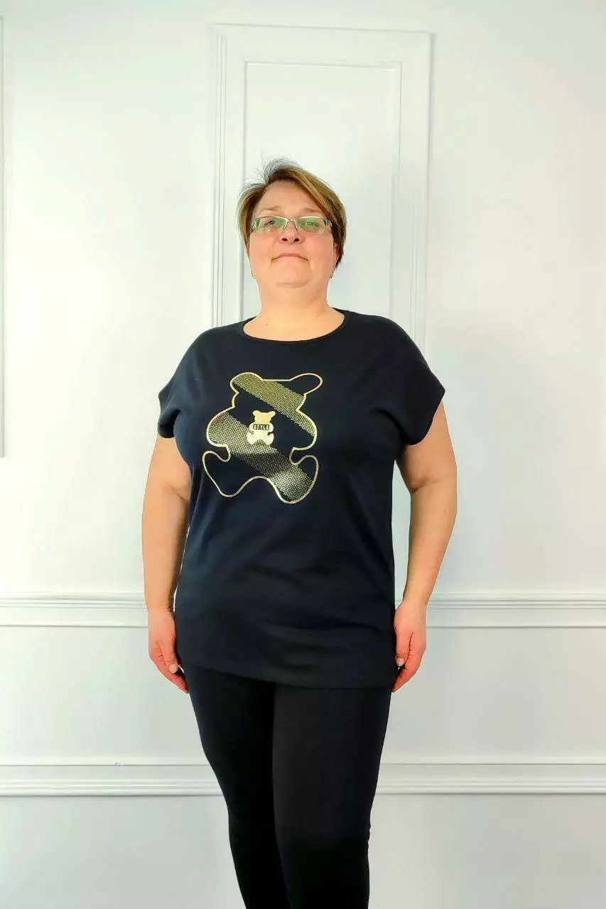 Футболка женская батал 52-54 56-58 60-62 мишка Чёрный