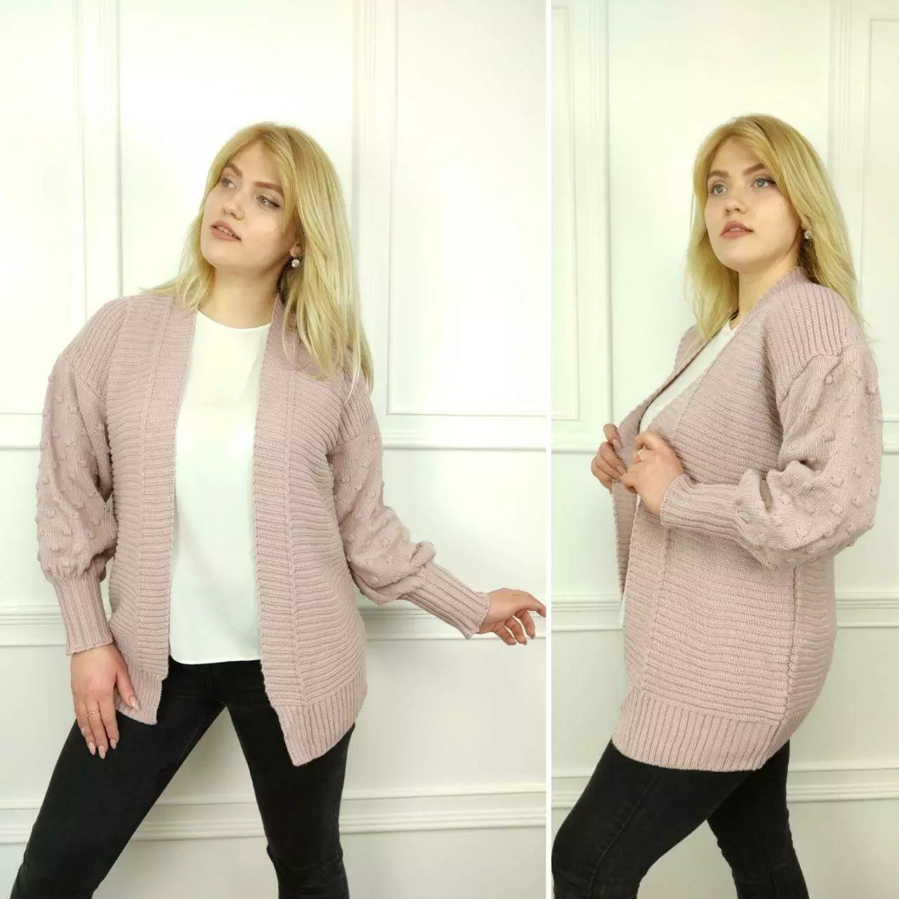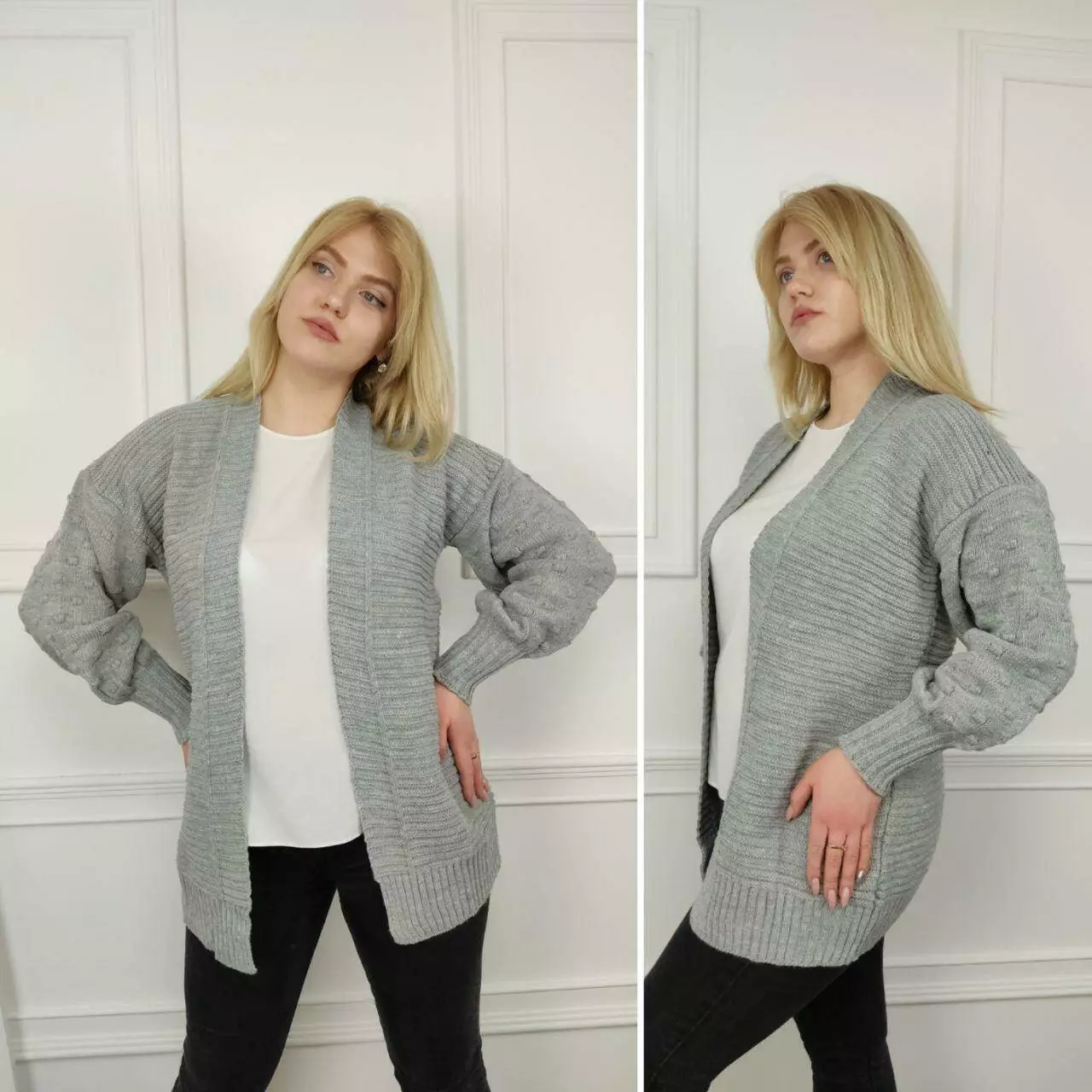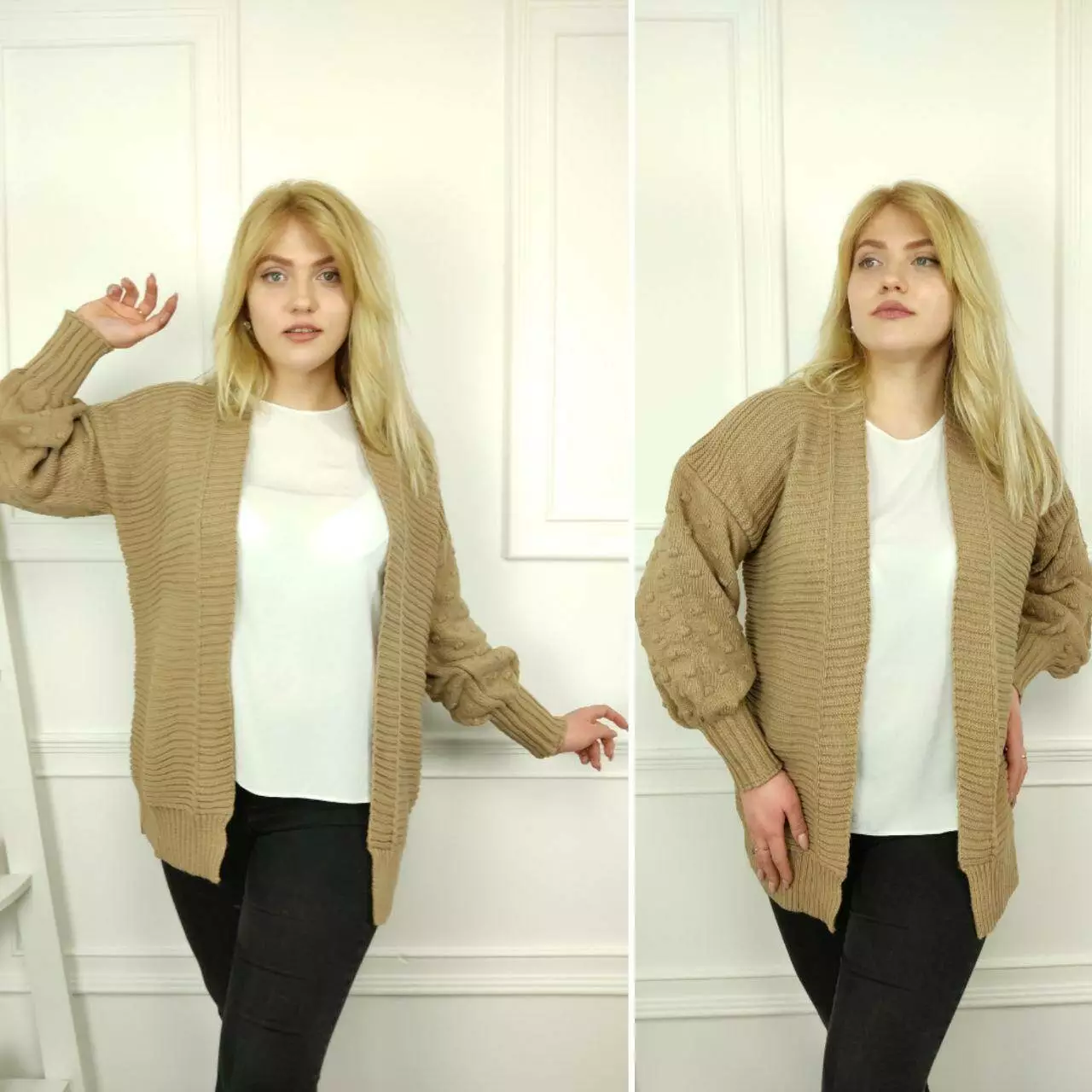 Кардиган женский 5123, акрил и шерсть, универсальный 44-50, бежевый