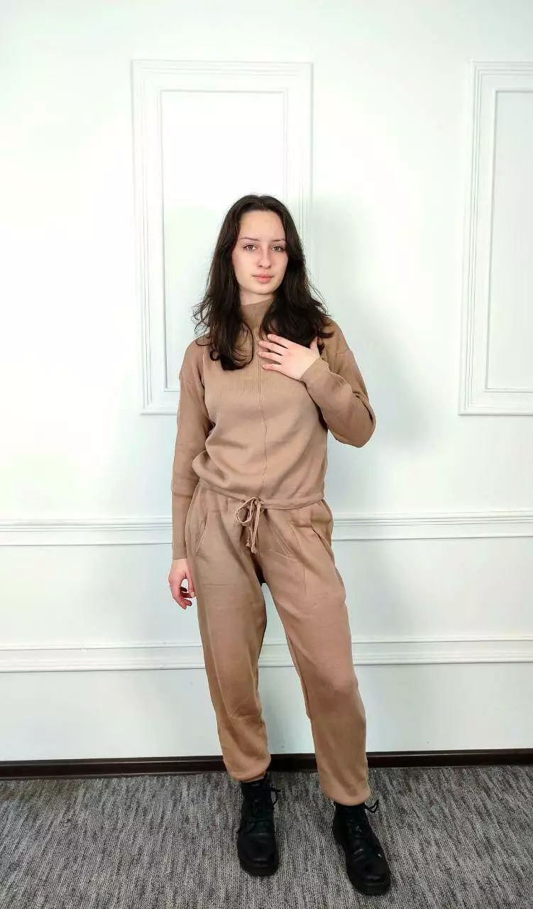 Вязаный женский костюм из хлопка и акрила - это удобный и стильный комплект, который идеально подходит для прохладной погоды. Этот костюм изготовлен из комбинации натурального хлопка и синтетического акрила. Хлопок придает костюму мягкость и хорошую вентиляцию, в то время как акрил придает дополнительную теплоизоляцию и прочность. Такая комбинация материалов делает костюм удобным и практичным. Хлопок и акрил – это легкие и приятные материалы для ношения. Они не ограничивают движения и хорошо удерживают тепло, что делает этот костюм идеальным для холодного сезона. Этот костюм отличный выбор для тех, кто ценит удобство и качество материалов и ищет стильный способ согреться зимой.