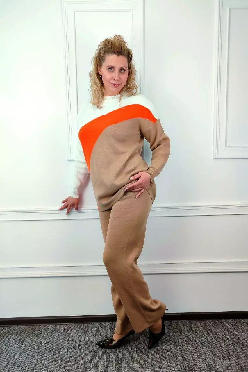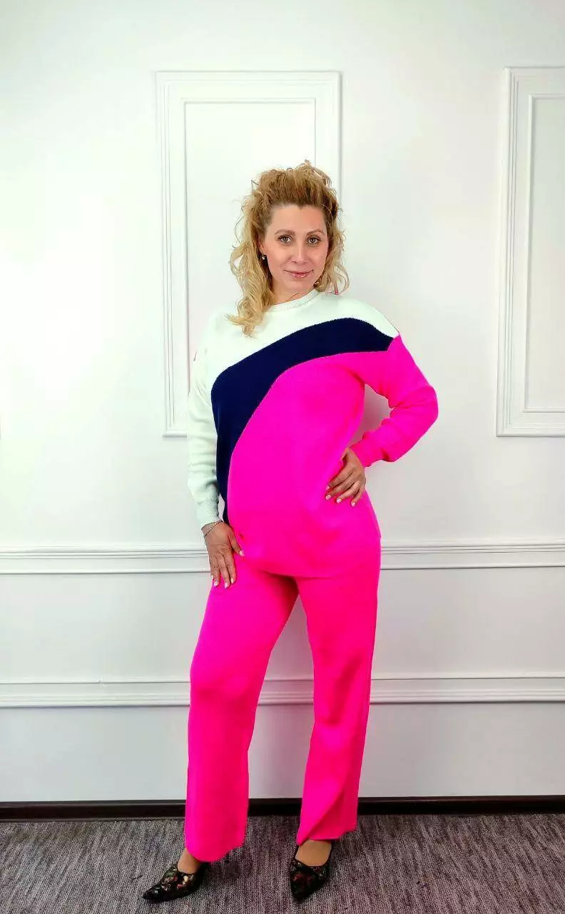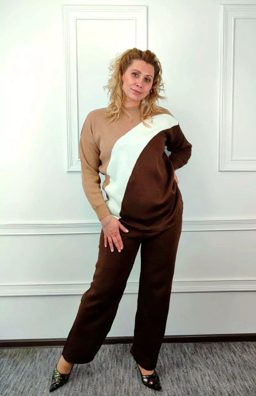 Вязаный женский костюм из хлопка и акрила - это удобный и стильный комплект, который идеально подходит для прохладной погоды. Этот костюм изготовлен из комбинации натурального хлопка и синтетического акрила. Хлопок придает костюму мягкость и хорошую вентиляцию, в то время как акрил придает дополнительную теплоизоляцию и прочность. Такая комбинация материалов делает костюм удобным и практичным. Хлопок и акрил – это легкие и приятные материалы для ношения. Они не ограничивают движения и хорошо удерживают тепло, что делает этот костюм идеальным для холодного сезона. Этот костюм отличный выбор для тех, кто ценит удобство и качество материалов и ищет стильный способ согреться зимой.