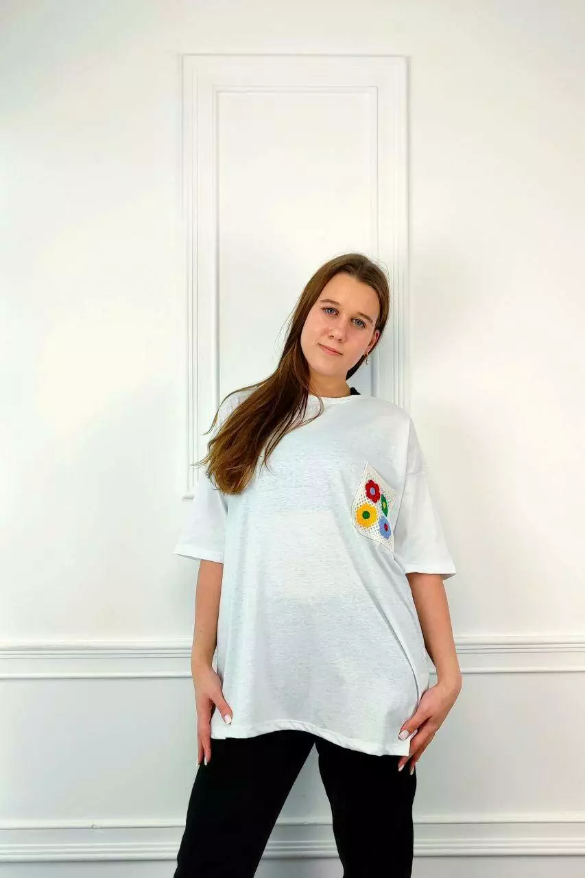 Молодежная женская футболка OVERSIZE 44-48 квадрат Белый