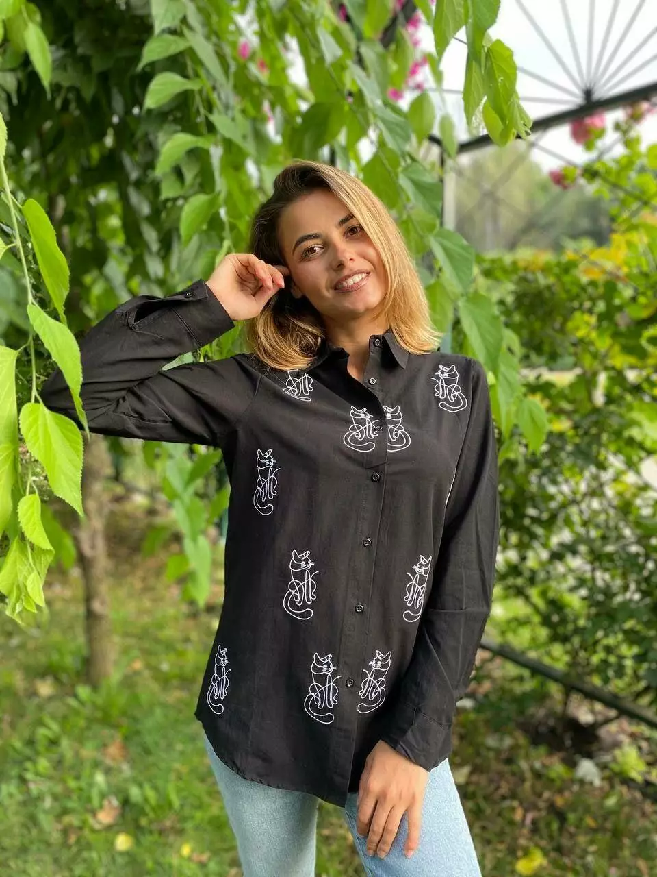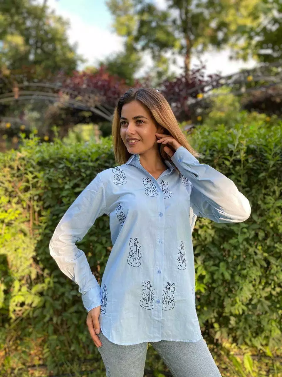 Стильные женские рубашки узор котики