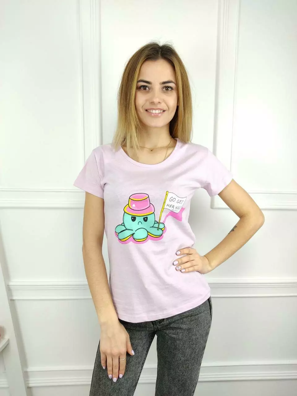 Женская футболка 42,44,46,48рр осьминог розовый
